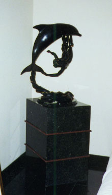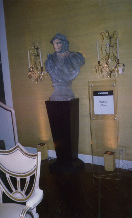 | This Uba Tuba green marble pedestal, includes Chinese Red granite accent strips. |