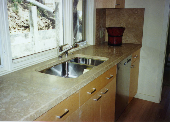 | This St Verans Limestone kitchen is made from a 1.5 inch thick slab. |
