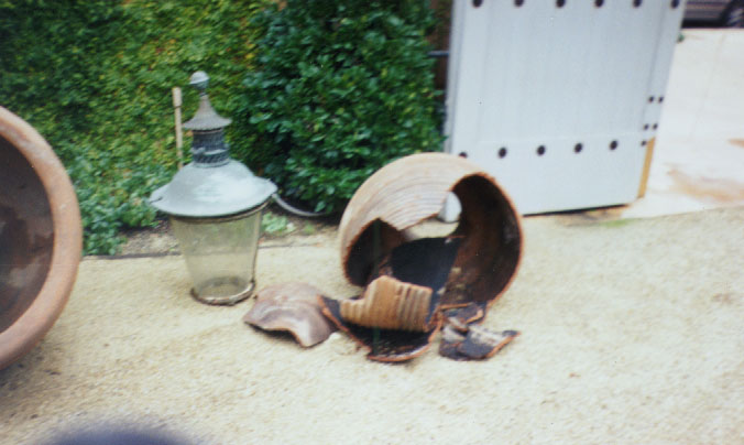 | This was once a beautiful terracotta vase and is now barely recognizable. |